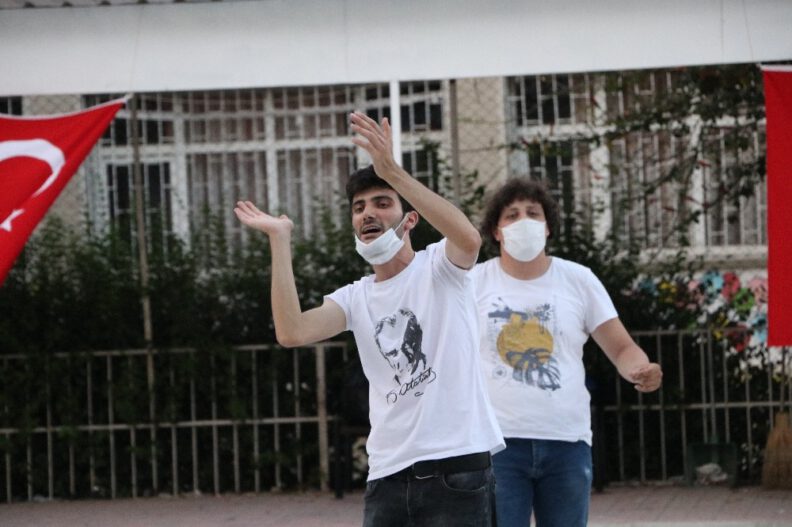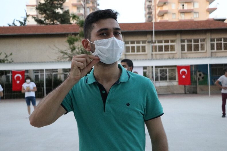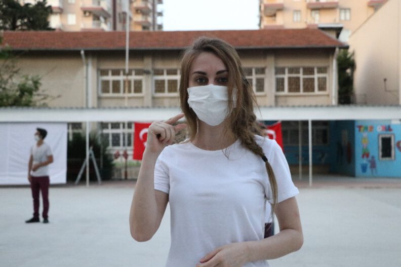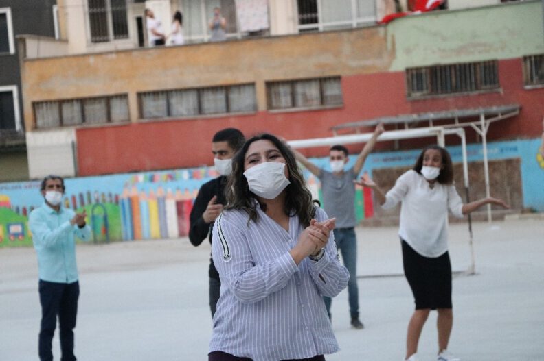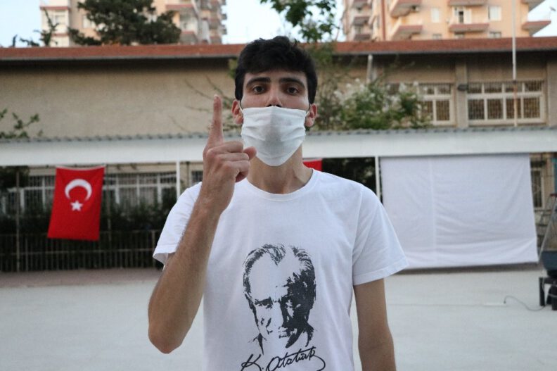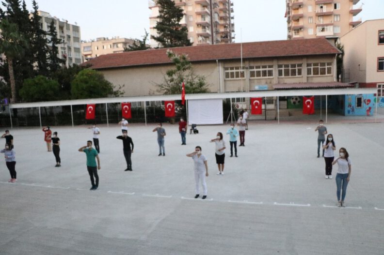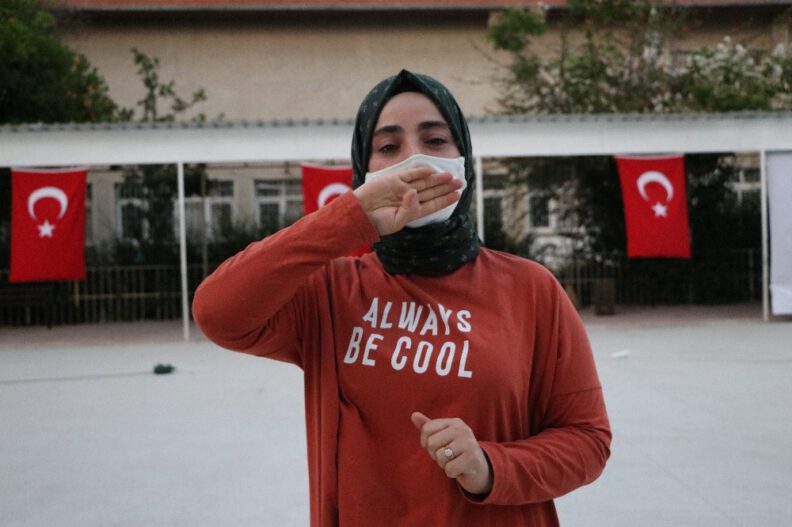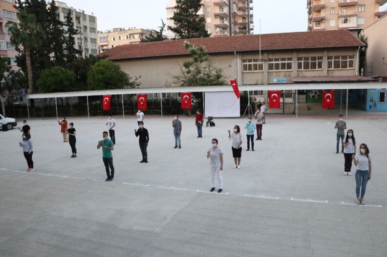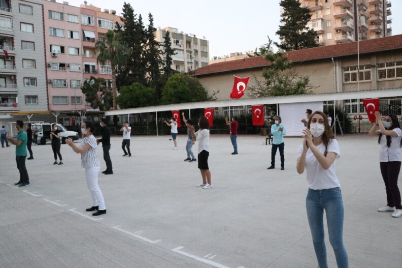 Mersin’de bir mahalle muhtarı tarafından bir araya getirilen gençler, 19 Mayıs Atatürk’ü Anma, Gençlik ve Spor Bayramı’nı işaret diliyle kutladı. Maske takıp, sosyal mesafeye dikkat edilen etkinlikte gençler, çalan müzikler eşliğinde de oynadı.