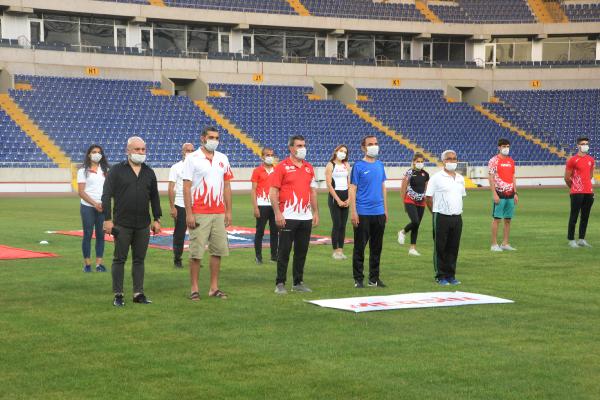 Gençlik ve Spor Bakanlığı’nca organize edilen, Türkiye Olimpik Hazırlık Merkezi (TOHM) sporcuları, olimpik ve paralimpik havuz sporcuları, kurum amirleri ve antrenörlerin katılımı ile Mersin Stadyumu’nda Türk Bayrağı ve Atatürk posteri açılarak saat 19.19’da İstiklal Marşı okundu. Gençlik Spor İl Müdürü Oğuz Kaymaz’ın da katıldığı törende sosyal mesafeye dikkat edilirken, katılımcılar maske taktı.