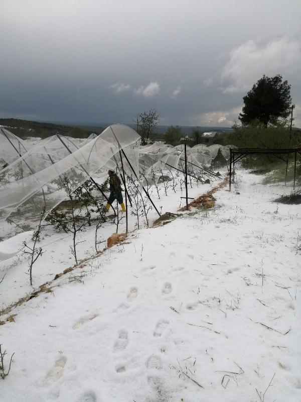 İlçede yaklaşık 750 ile 1000 rakım arasında bulunan Tozlu, Gavuruçtu ve Esenpınar yaylalarında dün gece saatlerinde dolu yağışı etkili oldu. Yağış nedeniyle yaylalar beyaza büründü. Bölgelerde oluşan kartpostallık manzara nedeniyle vatandaşlar selfie çekerken, yaklaşık 10 dakika süren dolu yağışı nedeniyle erik, elma, kiraz ve ceviz ağaçlarının yaprakları döküldü. Bazı sebze ve meyve seraları da zarar gördü.
