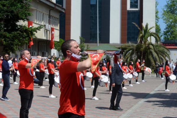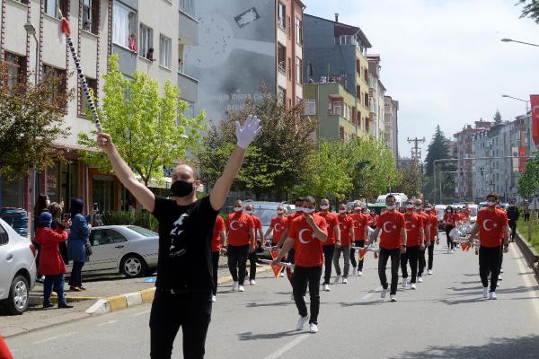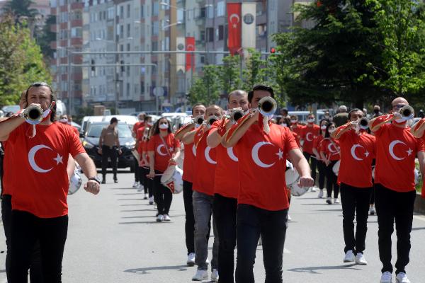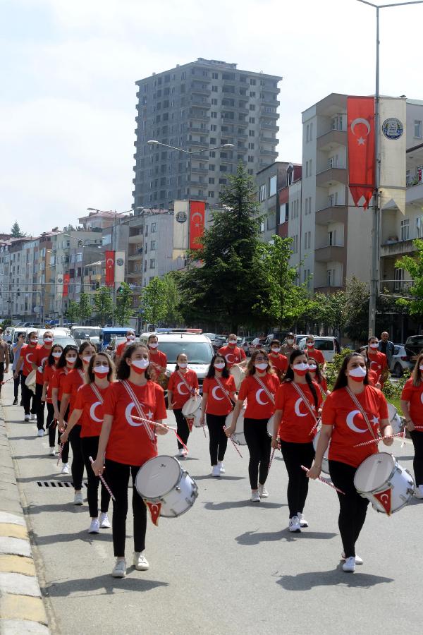Fatih TURAN- Selçuk BAŞAR/VAKFIKEBİR (Trabzon), (DHA)- TRABZON’un Vakfıkebir ilçesinde, aralarında öğretmen, akademisyen, bankacı, mühendis ile mimarların yer aldığı arkadaş grubu, oluşturdukları bando takımıyla, ilçe sokaklarında sahne alıp, düzenledikleri gösteriyle, 19 Mayıs Atatürk’ü Anma Gençlik ve Spor Bayramı’nı kutladı. İlçe halkı, maske takıp, sosyal mesafeye uyan grubun gösterisine, coşkuyla eşlik etti.