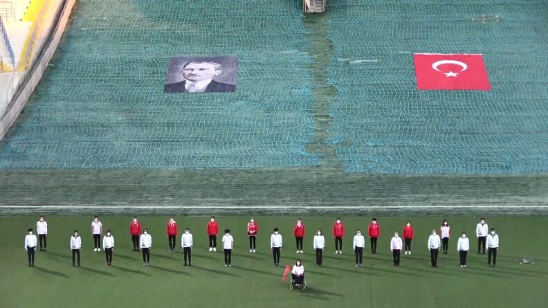 Tüm dünyayı etkisi altına alan korona virüs salgını nedeniyle bu yıl evlerde kutlanan 19 Mayıs Atatürk’ü Anma, Gençlik ve Spor Bayramı, Erzurum’da 20 milli sporcu tarafından Türkiye’nin ilk ve tek Kayakla Atlama Kulesi’nde saat 19.19’da İstiklal Marşı okunarak kutlandı. Gençlik ve Spor Bakanlığı himayesinde bir araya gelen milli sporcular, 19.19’da İstiklal Marşı’nı okumak için bakanlığa ait tesislerde buluştu. Erzurum’da kayak, buz pateni, curlign, judo ve atletizm branşlarında 20 milli sporcu, Atlama Kuleleri’nde Türk bayrağı ve Atatürk posteri açarak hep bir ağızdan İstiklal Marşı’nı okudu.