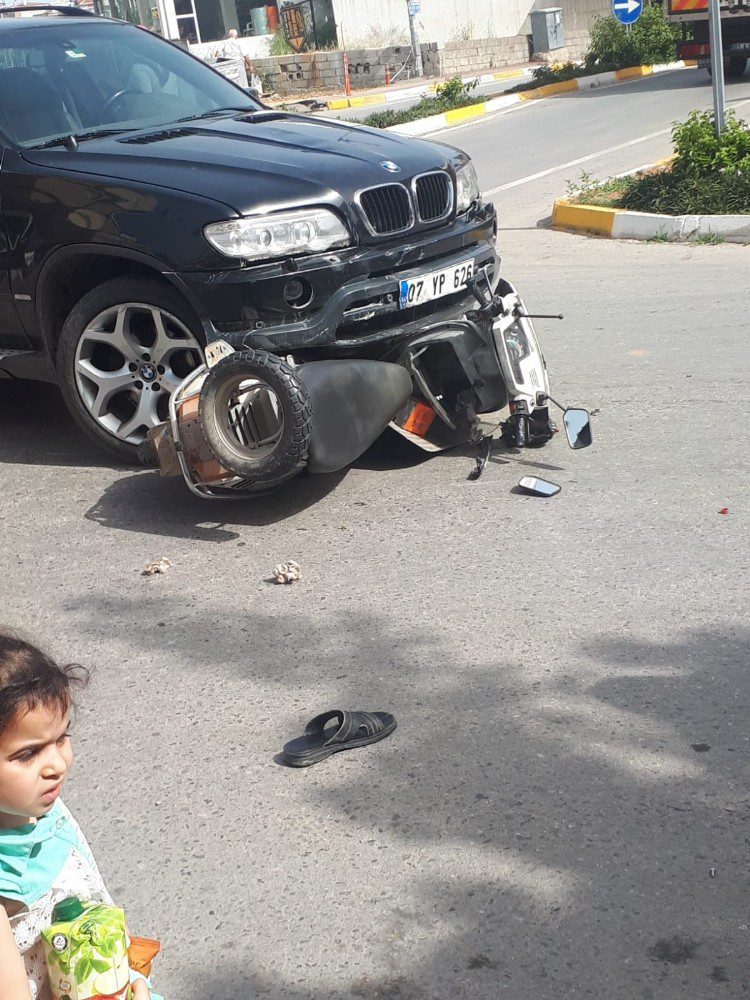 Antalya’da otomobil ile çarpışan motosikletin sürücüsü yaralandı.