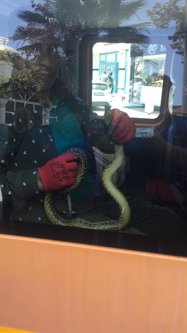 Yoldan geçerken kalabalığı görüp gelen Salim Metcikızı, yılanı motosikletin üzerinden aldı. Yılanı omuzlarına koyan Metcikızı, kalabalığa poz verdi. Metcikızı, çağırılan itfaiye ekibinin uyarısı üzerine yılanı araziye götürüp, doğaya saldı.