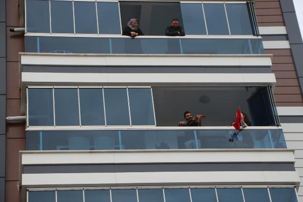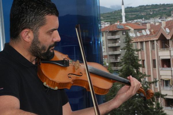 Fatih YILMAZ- Halil İbrahim YEL/TOKAT, (DHA) – TOKAT’ta, sokağa çıkma kısıtlamasında müzik öğretmeni Murat Ağıl, kemanıyla çıktığı evinin balkonundan konser verdi.