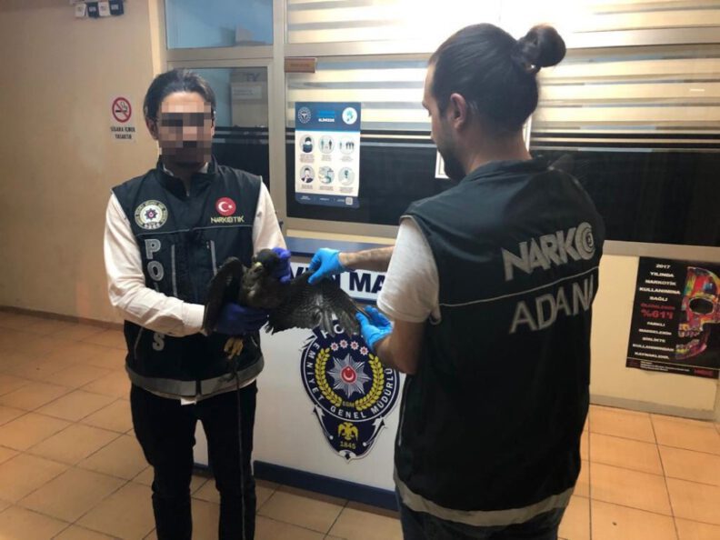 Adana Emniyet Müdürlüğü Narkotik Suçlarla Mücadele Şube Müdürlüğüne bağlı ekipler, 19 Mayıs Mahallesi’nde uygulama başlattı. Polis mahallede uyuşturucu satışının önüne geçmek için birçok noktayı kapatıp, araç ve şahısları aramaya başladı. Polis yaptığı bu uygulamada bir otomobilden şüphelenip durdurdu. Otomobildeki iki zanlı indirilip arama başlatıldı. Yapılan aramalarda otomobilin bagajında bir koli olduğu görüldü. Polis koliyi açtığında ağız kısmı bantlı, kanatları ve ayakları beyaz bez ile bağlı, ölü vaziyette kuş buldu. Polis, Doğa Koruma ve Milli Parklar Müdürlüğü görevlileri ile irtibata geçti. Görevliler, kuşun yırtıcı bir cins olan Gökdoğan kuşu olduğunu bildirdi. Bunun üzerine iki zanlı gözaltına alındı. Şahıslara 4915 Sayılı Kara Avcılığına Muhalefet suçundan toplamda 13 bin 967 lira idari para cezası uygulandı.
