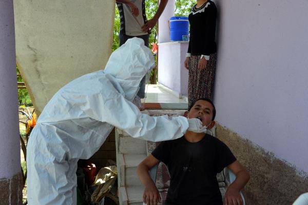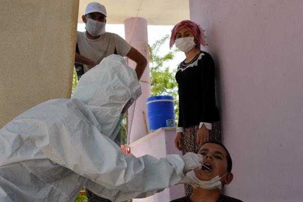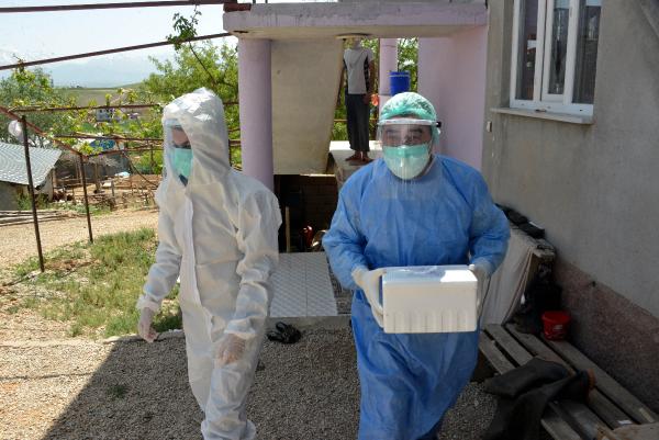Nişan sonrası 39 pozitif koronavirüs vakasının görüldüğü Afşin’in Hüyüklü Mahallesi’nde filyasyon ekiplerinin çalışması devam ediyor. 17 ayrı ekip, testleri pozitif çıkan kişilerin temas ettiği kişileri tespit edip tek tek evlerinde ziyaret ediyor. Ekipler daha sonra bu kişilerden numune alıp test için laboratuvara gönderiyor.