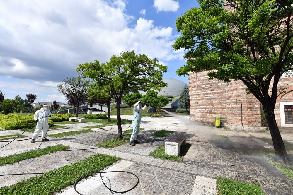 Koronavirüs tedbirleri kapsamında bir süredir kapalı bulunan camiler yarın yeniden ibadete açılmaya hazırlanırken, Osmangazi Belediyesi de cuma namazının kılınacağı camilerin yanı sıra belirlenen parklar ve pazar alanlarını dezenfekte etti.