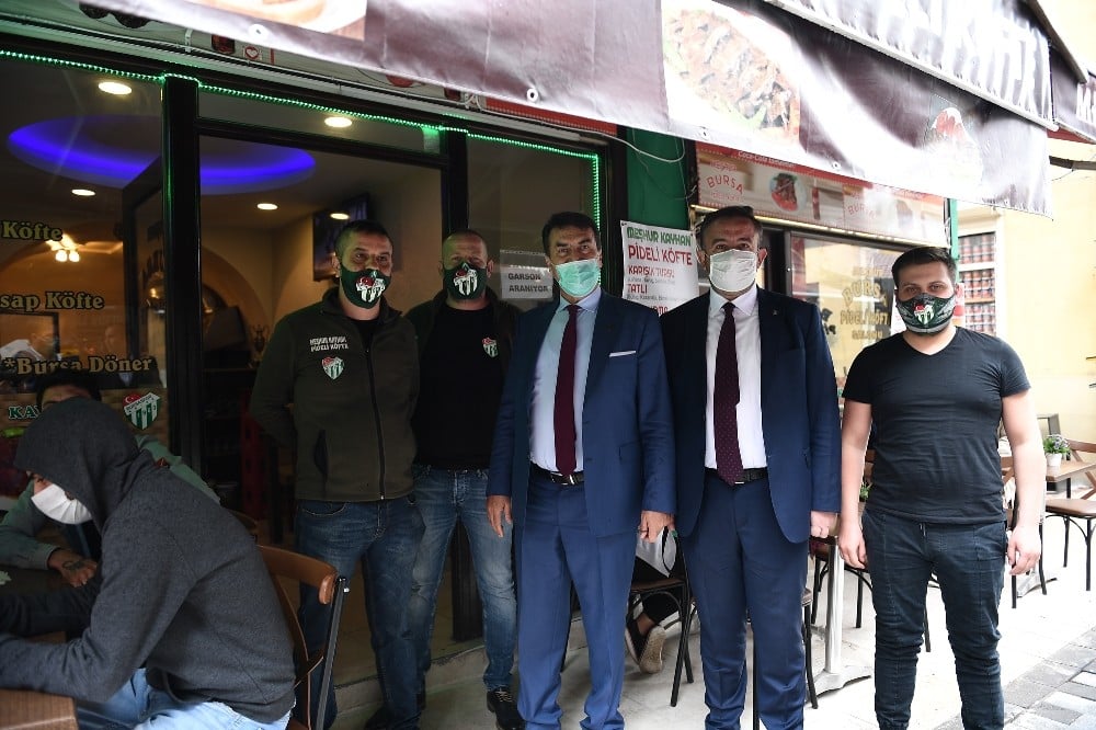 Belediye Başkanı Mustafa Dündar, korona virüs tedbirleri kapsamında uzun süredir iş yerlerini kapalı tutan ve sosyal hayatın başladığı yeni dönemin ilk gününde kepenklerini açan esnafı ziyaret etti. Başkan Dündar, AK Parti Osmangazi İlçe Başkanı Ufuk Cömez ile birlikte ilk iş günlerinde Kayhan Çarşısı esnafını tek tek gezdi. Esnafa maske ve dezenfektan dağıtan Başkan Dündar, maske kullanımı, sosyal mesafe ve hijyen konusunda dikkatli davranılması gerektiğine dikkat çekti.