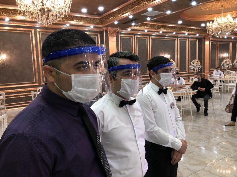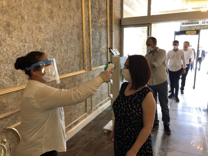 Yeni tip korona virüs ile yoğun mücadelenin ardından kademeli normalleşme döneminde düğünlere uygulanan yasağın kalkmasına yönelik hazırlıklara başlayan salon işletmecileri, korona virüse karşı tedbirler geliştirdi. Yasağın kalkmasının ardından yaz aylarında düğün açısından yoğun bir dönem geçmesini bekleyen işletmeciler, salonlarında hijyen kurallarına yönelik uygulanacak tedbir planlaması yaptı. Beylikdüzü’nde bir düğün salonunda hazırlıklara ilişkin gerçekleşen bir düğün örneğinde yapılacak önlemler uygulamalı gösterildi. Her düğün organizasyonunda davetlilerin ateşi ölçülerek salona girecek. Salona maskesiz girişe izin verilmeyecek, girişte de isteyene maske dağıtılacak. İşletmecilerin aldığı önlemler kapsamında salonlarda her düğün sonrası ve öncesinde dezenfeksiyon işlemi yapılacak. Düğünde konuklara girişte el dezenfektanı ya da kolonya ikram edilip, salon içerisinde belirli aralıkta veya masalarda misafirler ağırlanacak. Düğünlerdeki meşrubat, kuru pasta veya yemek gibi ikramların servisi, dağıtımı sürecinde salon çalışanlarının hijyen kurallarına titizlikle uyacağı belirtildi.
