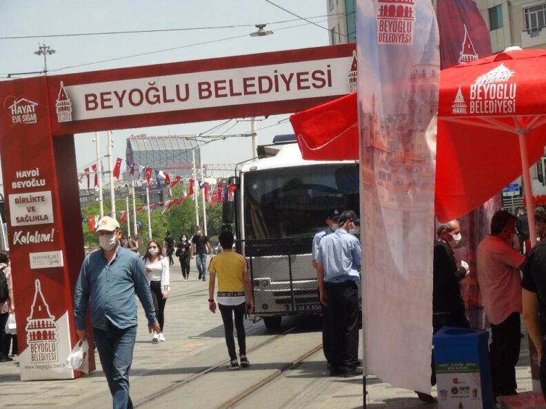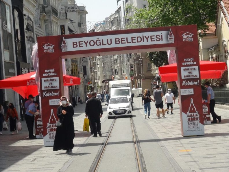 İstiklal Caddesi girişinde vatandaşların caddeye girişini denetlemek için zabıta ekipleri tarafından konulan dev kapıdan geçmek isteyen çevik kuvvet otobüsü kapıya sığmayınca kapıyı devirdi. Zabıtalar devrilen kapının altında kalmaktan son anda kurtulurken, kapının yakınlarında başka birinin olmaması faciayı önledi. Yaşananlar İhlas Haber Ajansı muhabiri tarafından saniye saniye görüntülendi.