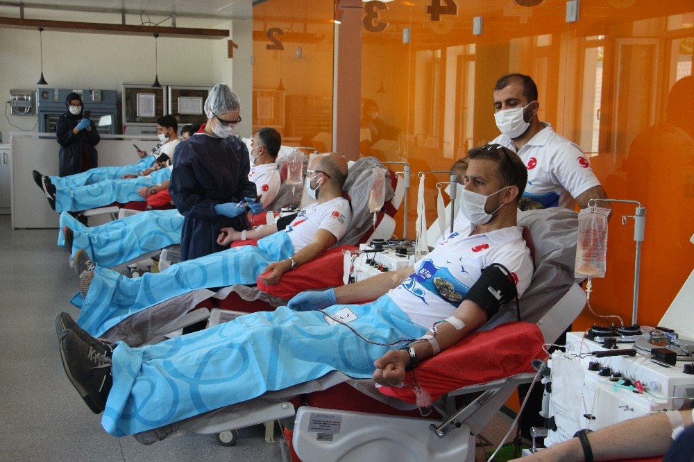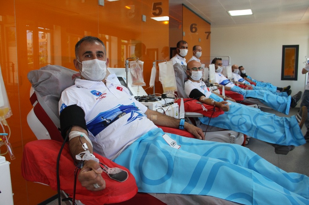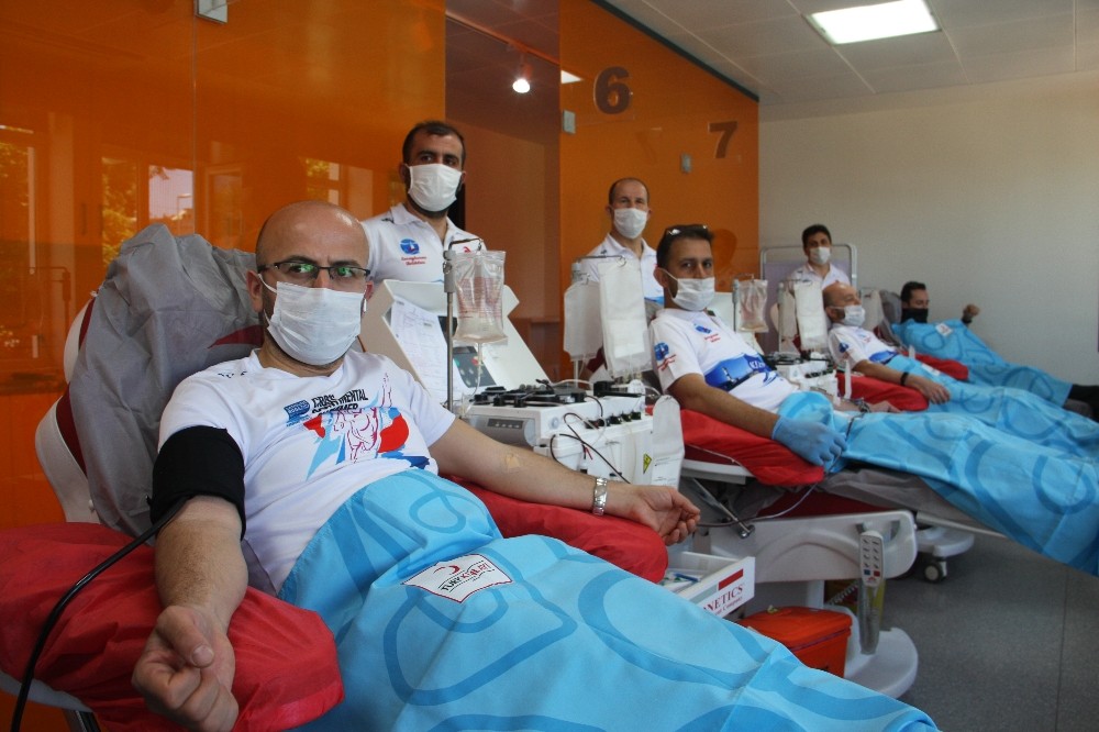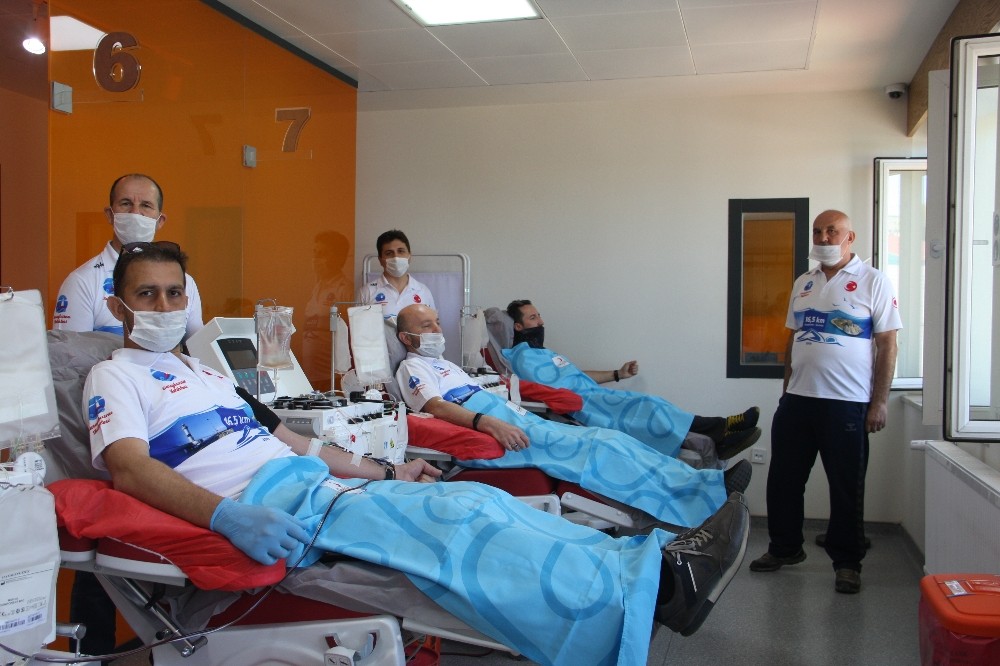 Korona virüs salgını nedeniyle azalan kan bağışına destek vermek amacıyla ‘Sarayburnu Fatihleri’ olarak adlandıran bir grup Kızılay’a kan bağışında bulundu.