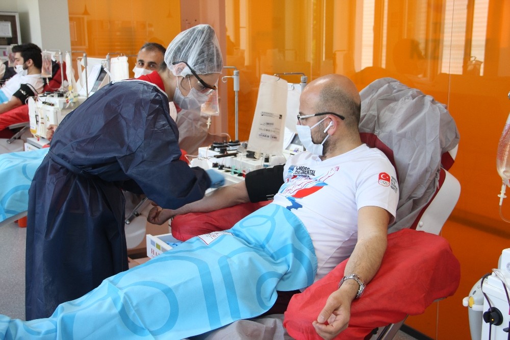 Kan bağışı yapan Vedat Sevim, “Sarayburnu Fatihleri Sivriada ekibi olarak haftada ve ayda bir kez olmak üzere trombosit kan bağışı yapmaktayız. Kan bağışı yaparak farkındalık oluşturmak zorundayız. Pandemi süresince kimse kan vermiyor. Biz bu gibi etkinliklerle insanlarımızı bilinçlendirmeye çalışıyoruz. 10 arkadaşımızla birlikte bugün buraya geldik. Hep beraber kan veriyoruz” dedi.