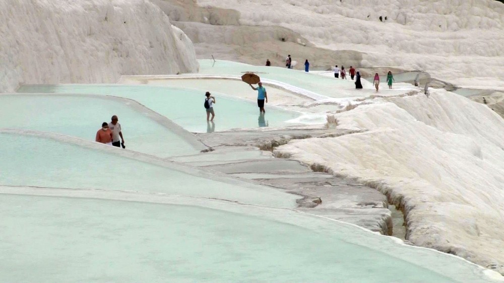 Korona virüs tedbirleri kapsamında ziyarete kapanan Pamukkale travertenleri aylar sonra ziyarete açıldı. Yurt dışı uçak seferlerinin kapalı olması sebebiyle Pamukkale, yerli turistleri ağırlıyor.