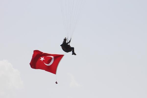 Muhammet SIDAL/BEYŞEHİR,(Konya) , (DHA)- KONYA’nın Beyşehir ilçesinde, 19 Mayıs Atatürk’ü Anma Gençlik ve Spor Bayramı’nın 101’inci yılı kutlamaları kapsamında yapılan paraşütçülerin Türk bayrağı gösterisi Beyşehir Gölü semalarında güzel görüntüler oluşturdu.