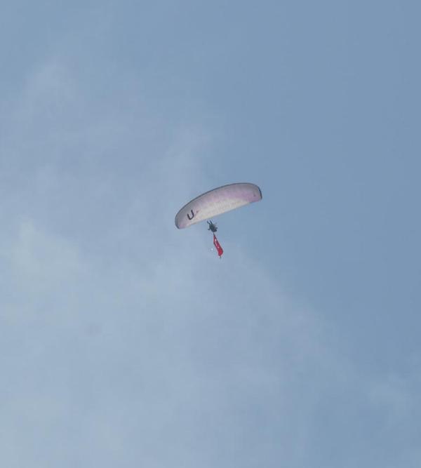 Cemil SEVAL / MANİSA, (DHA) – MANİSA’da 19 Mayıs Atatürk’ü Anma, Gençlik ve Spor Bayramı törenlerinde paraşütçüler, gökyüzünde Türk bayrağı açarak kutlamalara renk kattı.