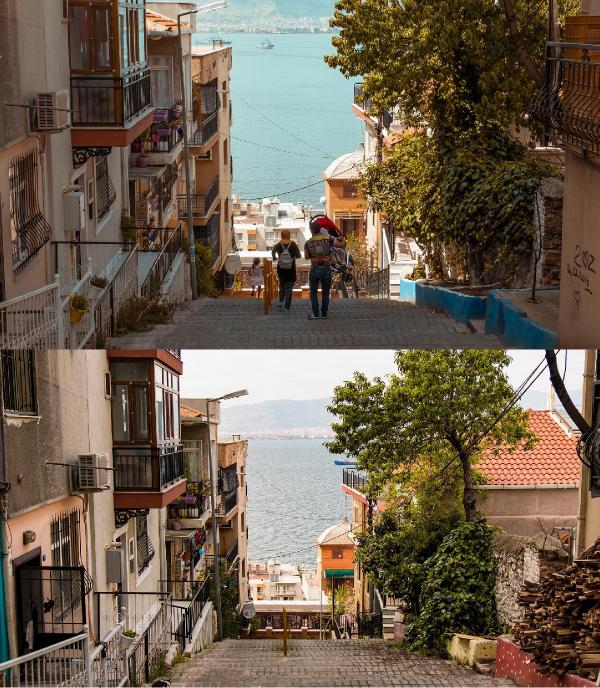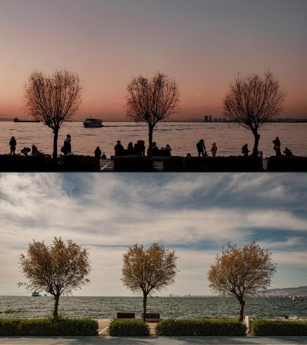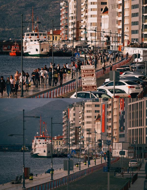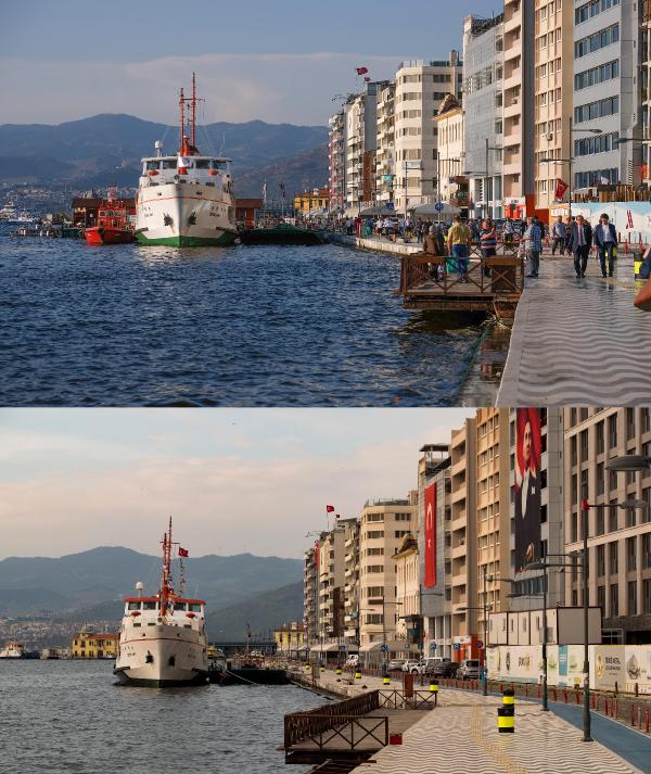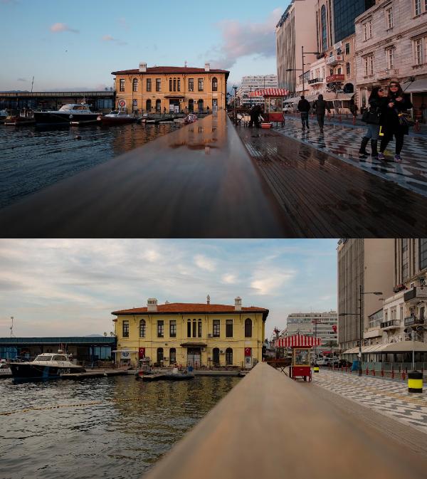Hande NAYMAN- Ahmet Turhan ALTAY/İZMİR, (DHA)- İZMİR Emniyet Müdürlüğü’nde görev yapan ve 12 yıldır fotoğrafçılıkla ilgilenen polis memuru Hacı Emre Polat (32), arşivindeki İzmir’in en kalabalık zamanlarında çektiği fotoğrafları, sokağa çıkma kısıtlamasının uygulandığı günlerde çektiği fotoğraflarla yan yana getirdi. Polat, birebir aynı kadrajı kullandığı fotoğrafları sosyal medyada paylaştı.