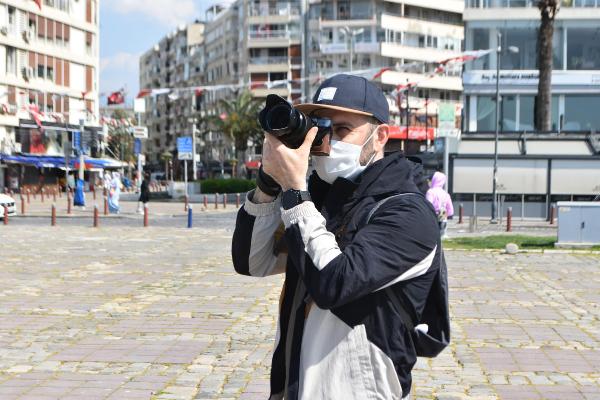 İl Emniyet Müdürlüğü’ne bağlı Basmane Polis Merkezi Amirliği’nde görevli polis memuru Hacı Emre Polat, yaklaşık 12 yıldır fotoğraf sanatıyla ilgileniyor. Görevinden arta kalan zamanlarda manzara ve doğa fotoğrafları çeken Polat, oluşturduğu dijital arşivini de sosyal medyada kullanıcılarla paylaşıyor. Fotoğrafın içinde duygu yüklü kareleri barındırdığını söyleyen Polat, ‘üçüncü gözüm’ dediği fotoğraf makinesini yanından ayırmıyor. Polis memuru Polat, İzmir’in en kalabalık zamanlarında çektiği fotoğrafları, sokağa çıkma kısıtlamasının uygulandığı günlerde çektiği fotoğraflarla yan yana getirdi. Bire bir aynı kadrajı kullandığı fotoğrafları sosyal medyada paylaşınca, aradaki farkın gözler önüne serilmesiyle kullanıcıları duygulandırdı. İzmir’i daha önce bu kadar ıssız ve sakin görmediğini söyleyen Polat, “Beni fotoğraf çekmeye heveslendiren birkaç olaydan biri de sokakların boş olmasıydı. Gerçekten tarihe tanıklık edilecek anları yaşadık. İnsanı ürperten bir sessizlik vardı. Öncesi ve sonrasını birleştirince oradaki duygu daha fazla hissediliyor. Eğer fotoğrafları eşleştirmeseydim belki de bu şekilde bir duygu yüklü çalışma olmayacaktı” dedi.