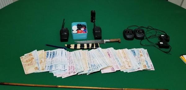 Kütahya Emniyet Müdürlüğü Asayiş Şubesi ekipleri, Balıklı Mahallesi’nde kumar oynandığı bilgisi üzerine harekete geçti. Saat 03.00’te bir apartmanın üçüncü katına savcılık talimatıyla baskın yapan polis ekipleri, 15 kişiyi kumar oynarken yakaladı. Ayrıca cadde üstündeki bir kişinin park halindeki otomobilde telsizle gözcülük yaptığı tespit edildi. Borsa olarak tabir edilen kumarın oynandığı masalarda yaklaşık 25 bin lira ele geçirildi. Para, zar ve pullar ile haberleşme için kullandıkları telsizlere el koyan polis ekipleri şüpheliler hakkında kumar oynamak suçundan adli soruşturma başlatırken, koronavirüs tedbirleri kapsamında sosyal mesafe kuralını ihlal ettikleri gerekçesiyle de 3 bin 150’şer lira idari para cezası uyguladı. Şüpheliler arasında hırsızlık suçundan arandığı tespit edilen 1 kişi de gözaltına alındı. Polis, operasyonda ele geçirilen paralarla ‘Evde kal’ yazısı oluşturdu.