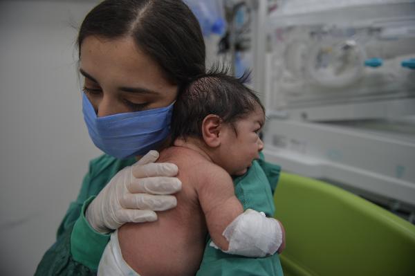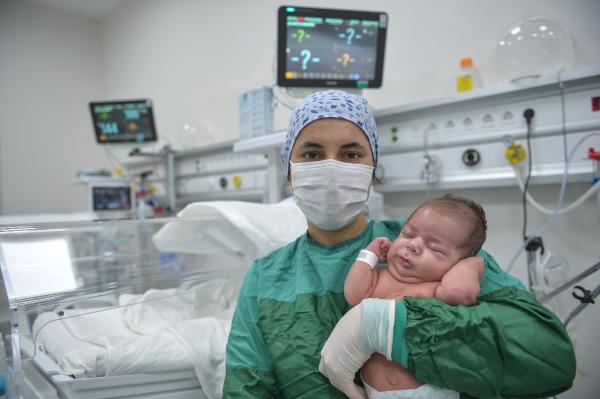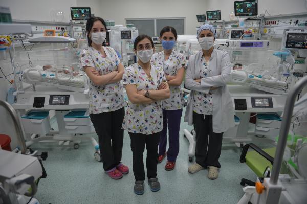 Sancaktepe Şehit Prof. Dr. İlhan Varank Eğitim ve Araştırma Hastanesi Yenidoğan Yoğun Bakım Sorumlu Hemşiresi Esra Haznedaroğlu (39), 16 yıllık hemşire ve bunun 12 yılını yenidoğan hemşiresi olarak sürdürdüğünü söyledi. Haznedaroğlu, bu pandeminin meslek hayatı boyunca yaşadığı en zorlu süreç olduğunu anlatarak “Buradaki tüm bebekler bize emanet ve biz onların annesi babası oluyoruz. Daha önce hiç böyle bir dönem yaşamadık. Kovid pandemisi herkes için yeni bir süreçti. Kimse hiçbir şey bilmiyor, her şey çok yeni, çok fazla bilinmezlik vardı. Özellikle yenidoğan yoğun bakım açısından çok fazla bilinmezlik vardı. Dünyada bu işler nasıl yürüyor, yenidoğan yoğun bakım açısından pandemide neler yapılıyor, ona göre bir eylem planı oluşturmaya çalıştık. Bu süreçte 94 bebeğin yatışı oldu, bunların 27 tanesi Kovid şüpheli ya da Kovid pozitif annelerin bebekleriydi. Pozitif annelerin bebekleri genellikle prematüre doğuyordu. 30 haftalık, 29 haftalık, 31 haftalık bebekler geldi bu şekilde” dedi.