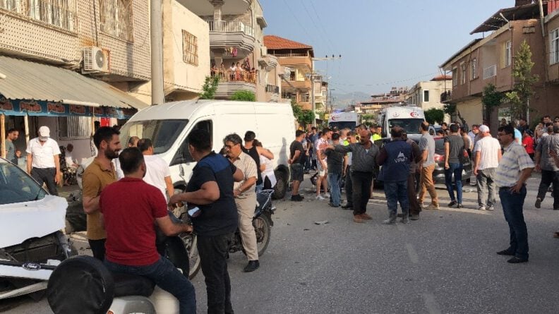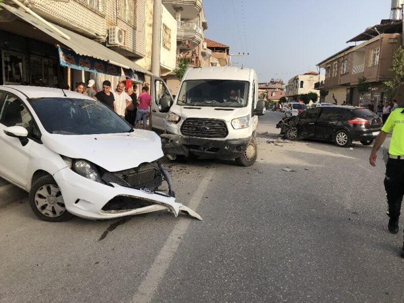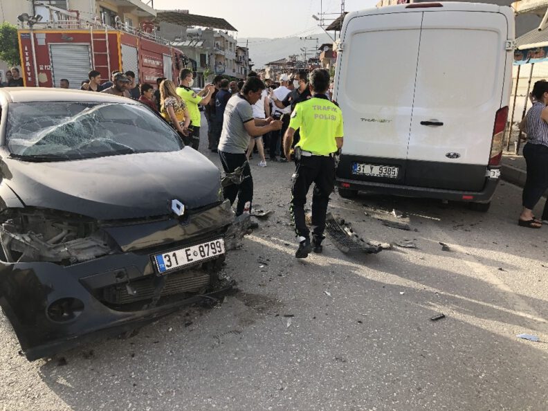 Kaza, ilçeye bağlı Kurteres Mahallesi’nde meydana geldi. Edinilen bilgiye göre, 31 E 8799 plakalı otomobilin sürücüsü Servet D. sol şeride geçmek istedi. Araç orta şeritten sol şeride yöneldiği sırada park halindeki 31 SG 460 plakalı otomobile ve ardından 31 Y 9385 plakalı hafif ticari araca çarptı. Kazada 2 kişi yaralanırken, araçlarda maddi hasar meydana geldi. Yaralılar ambulansla hastaneye kaldırılırken, kaza nedeniyle yol bir süre trafiğe kapandı.