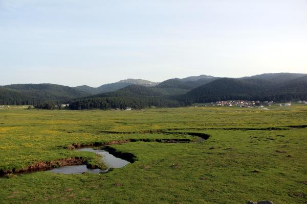 Murat KÜÇÜK/BOLU, (DHA)- BOLU’nun kayak merkezi Kartalkaya yolu üzerindeki Sarıalan Yaylası, baharla birlikte sarı kır çiçekleriyle doldu. Yaylanın kendine hayran bırakan görüntüsü, drone ile havadan görüntülendi.