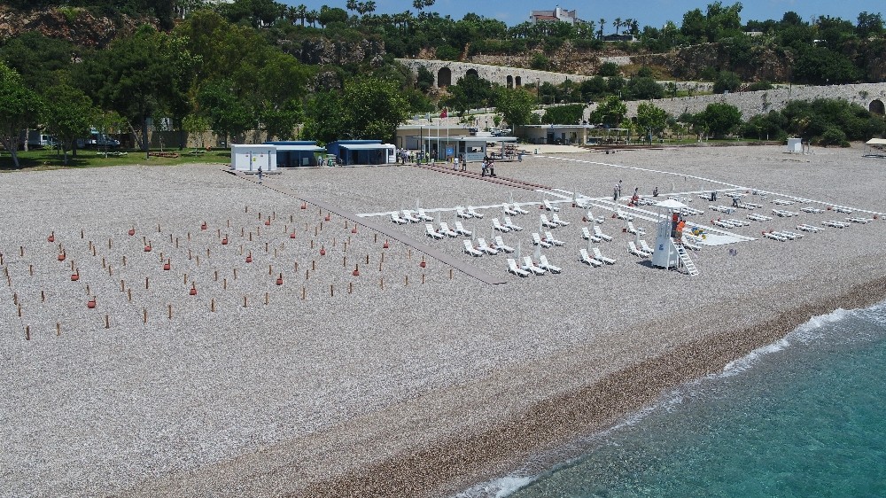 Böcek, “Pandemi sürecinde idari izinde bulunan veya esnek çalışma sistemine dahil olan kamu personeli 1 Haziran tarihi itibarıyla normal mesaisine başlayacak. Ancak kronik rahatsızlıkları doktor raporu ile tespitli personeller idari izinli sayılacak. Büyükşehir Belediyesi’nin sorumluluğunda olan plajlar; Konyaaltı Sahili, Lara Plajı sezon için hazırlandı. Konyaaltı Sahili’nde yürüyüş yolları, yeşil alanlar, kent mobilyaları ve soyunma kabinlerine kadar kapsamlı bir bakım-onarım gerçekleştirdi. Varyanttan başlayarak Konyaaltı Beachpark ve Akdeniz Bulvarı hattı boyunca peyzaj revizyonları yapıldı. Bu kapsamda halkın ücretsiz olarak faydalandığı kısımda sahile sabitlenen ahşapların etrafı halatlarla sarılarak 9 metrekarelik özel alanlar oluşturuldu. Bu kısma vatandaş şemsiye ya da havlusunu gönül rahatlığıyla getirebilecek. Şezlong kullanmak isteyen vatandaşlara da 3’lü, 2’li veya tekli seçenekler sunulacak. Şezlonglar görevliler tarafından sık sık dezenfekte edilecek. Dezenfekte işleminin ardından 20 dakika bekletilen şezlonga yeni bir tatilci alınacak. Plaja gelen her tatilcinin ellerine dezenfektan sıkılıp, maske verilecek. Tuvaletlere sensörlü aydınlatmalar, fotoselli musluklar ve temassız sabunluklar yer alacak. Çoklu duş ünitelerinin yerine tekli duş üniteleri kullanılacak.