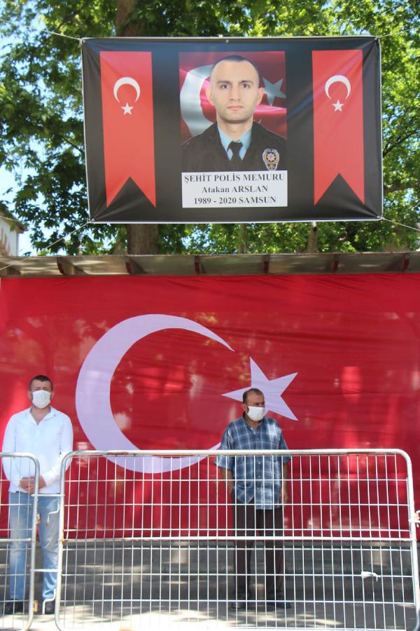 Şehit polis memuru Atakan Arslan için memleketi Samsun’un Çarşamba ilçesinde cenaze töreni düzenlendi. Törene İçişleri Bakanı Süleyman Soylu, şehidin eşi Gözde, babası Ali ve annesi Şükran Arslan, AK Parti Genel Başkan Yardımcısı Çiğdem Karaaslan, Samsun Valisi Osman Kaymak, Garnizon Komutanı Albay Recep Ali Üstün, Emniyet Genel Müdürü Mehmet Aktaş, askeri ve polis erkanı, şehidin yakınları ile çok sayıda vatandaş katıldı. Cenazede, salgın tedbirleri kapsamında, sosyal mesafede saf tutulması için alandaki zemin işaretlendi.