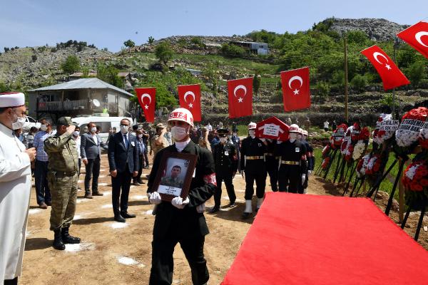 Koronavirüs salgını tedbirleri kapsamında sosyal mesafe kuralına uygulan olarak gerçekleştirilen cenaze törenine, şehidin ailesi ve yakınları ile Adana Valisi Mahmut Demirtaş, milletvekilleri, askeri erkan ve vatandaşlar katıldı. İl Müftüsü Hasan Çınar’ın kıldırdığı cenaze namazının ardından şehit Halil Çakır, dualar eşliğinde toprağa verildi.