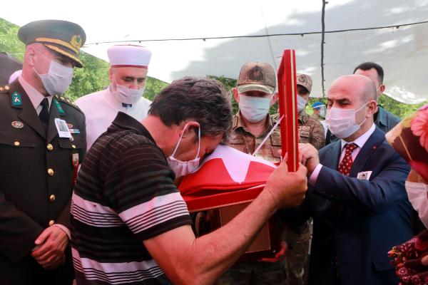Gözyaşlarına boğulan baba Hüseyin Çakır ile anne Cennet Çakır’a defin işleminin ardından Türk bayrağı takdim edildi. Oğlunun fotoğrafını öpen anne, daha sonra da mezarına su döktü.