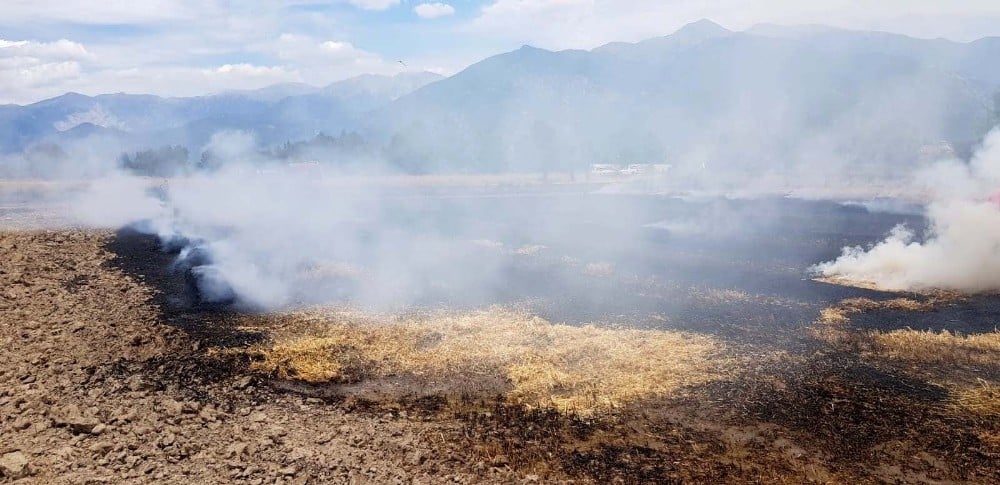 Muğla’nın Seydikemer ilçesinde çıkan anız yangınında 80 saman balyası yandı.