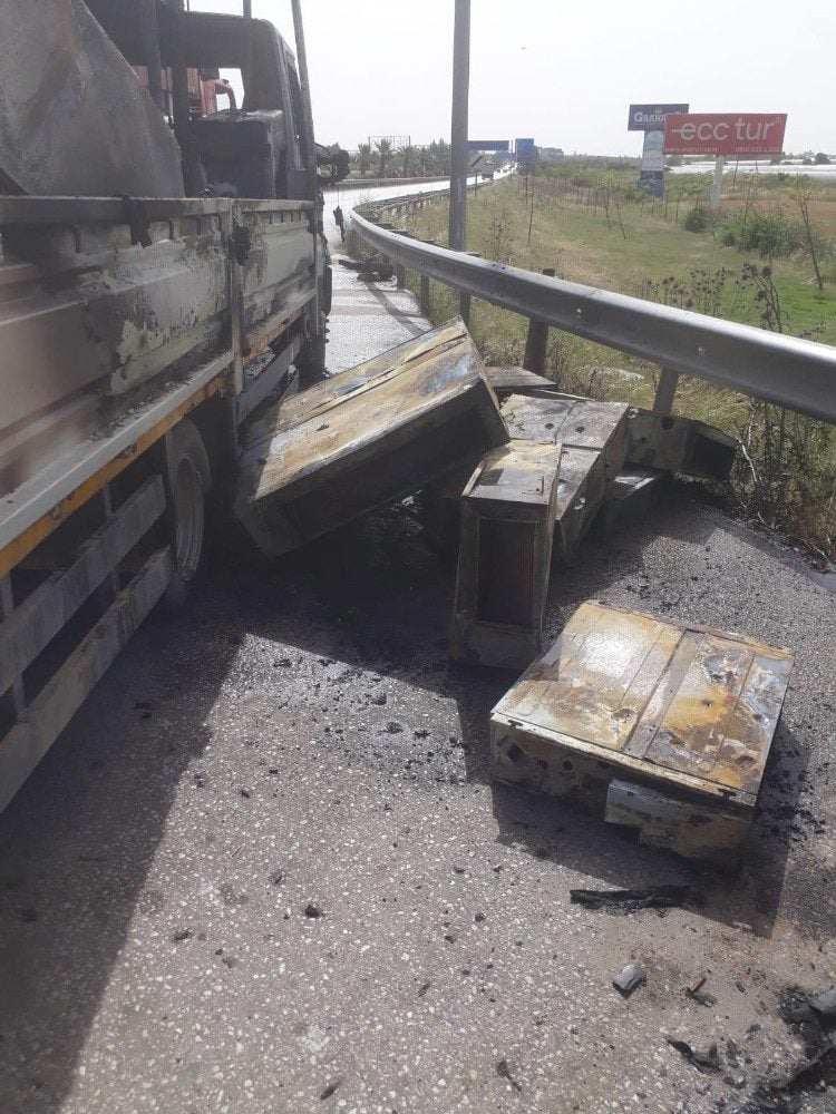 Antalya-Serik D 400 karayolunda öğle saatlerinde üzerinde klima üniteleri yüklü olan 07 MBA 04 plakalı araç seyir halindeyken alev aldı. Araç sürücüsü Emrah Avşar durumu fark etti ve 112 itfaiye ekiplerine haber verdi. Antalya Büyükşehir Belediyesi itfaiye ekipleri yangını söndürmesine rağmen araçla birlikte klima üniteleri kullanılamaz hale geldi. Olayla ilgili soruşturma başlatıldı.