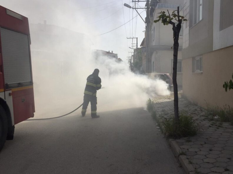 Edinilen bilgiye göre; olay Esentepe Mahallesi Yeşil Meydan Caddesinde yaşandı. Öğle saatlerinde seyir halinde olan 26 AC 996 plakalı otomobilin motor bölümünde yangın çıktı. Çıkan dumanlar kısa sürede aracı sararken, bu esnada akü de patladı. Sürücü aracını durdurup kendisini güçlükle dışarı attı. Çevredeki vatandaşların durumu itfaiye ekiplerine bildirmesiyle bölgeye kısa sürede bölgeye gelen ekipler, yanan araca müdahale etti. Tazyikli suyla yanan otomobili söndüren itfaiye ekipleri, LPG ve elektrik aksamını söktü.