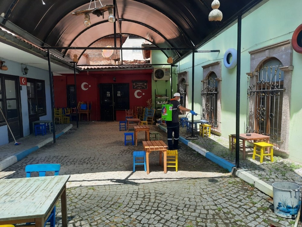 Sındırgı Belediyesine ait Zeytindalı Meydan Park, Şerif Paşa Çay Ocağı, Kışla Müze Han ve Belediye otelinde de detaylı temizlik ve dezenfekte çalışmaları tamamlandı. Oturma düzenleri sosyal mesafe kurallarına göre ayarlandı. Tesis girişleri ve belirli noktalara el dezenfekte istasyonları oluşturuldu.