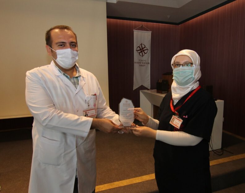 Korona virüs salgınıyla mücadele en ön safta görev yapan sağlık çalışanları, günlerin de unutulmadı. Özel Hayat Hastanesi Başhekimi Uzm. Dr. Fatih Özkul, hemşirelere plaket ve çiçek takdim etti.