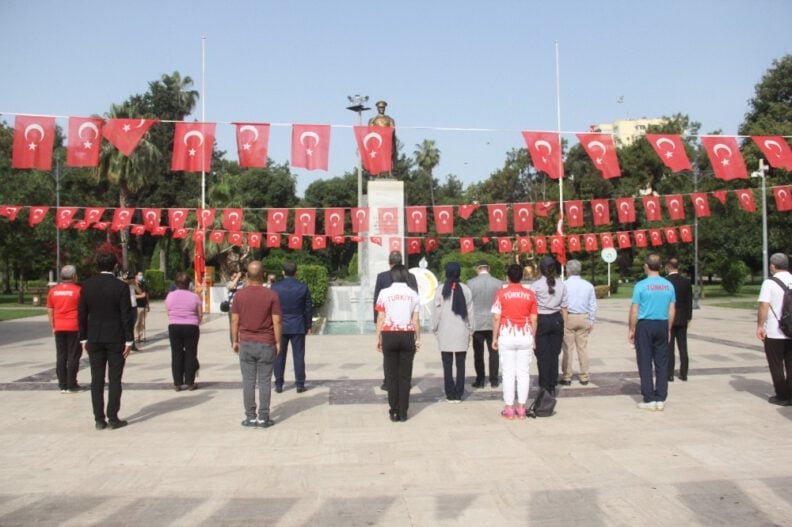 Adana İl Gençlik ve Spor Müdürlüğü organizesinde Atatürk anıtının önüne çelenk sunuldu. Ardından saygı duruşunda bulunulup, İstiklal Marşı okundu. Tüm bunlar azami katılımla maskeli ve sosyal mesafe korunarak yapıldı.