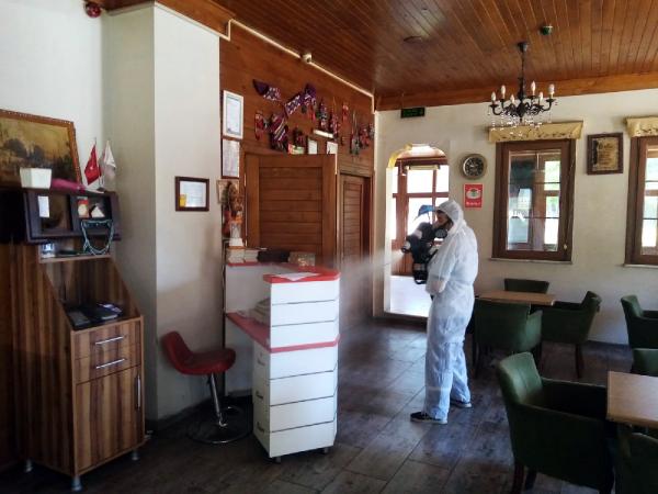 Toplum sağlığını korumak adına salgınla mücadele eden Bağcılar Belediyesi Çevre Koruma Müdürlüğü ekipleri, yarın ki açılış öncesinde yoğun tempoyla çalışmasını sürdürüyor. Özel kıyafetli ekipler, öncelikle tesislerin içindeki mutfak kısmından masa ve sandalyelere kadar her noktayı detaylı bir şekilde dezenfekte ederek steril hale getirdi. Ardından da işletmelerin ön kısmındaki açık alan da mikroorganizmalara karşı ilaçlandı. Gün boyu süren hijyen çalışmaları sonucunda parklardaki tesis ve işletmeler tertemiz oldu.