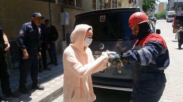 Yaklaşık yarım saatlik çalışmanın ardından kurtarılan yavru kedi, kendisini kucağına almak isteyen sahibini ısırdı. Çalışmalar sırasında korktuğu görülen kedi, kendisini itfaiye ekiplerinin elinden almak isteyen sahibi olan genç kızı parmağından ısırdı. Yavru kedi, bir kutuya konularak sahibine teslim edildi.