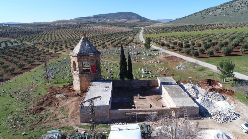 Hatay Vakıflar Bölge Müdürü Ümit Gökhan Çiçek, Afrin’de Suriye rejim güçleri tarafından atılan bombalar yüzünden hasar gören cami ve türbelerin Türkiye tarafından restore edildiği belirtti.