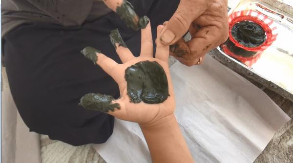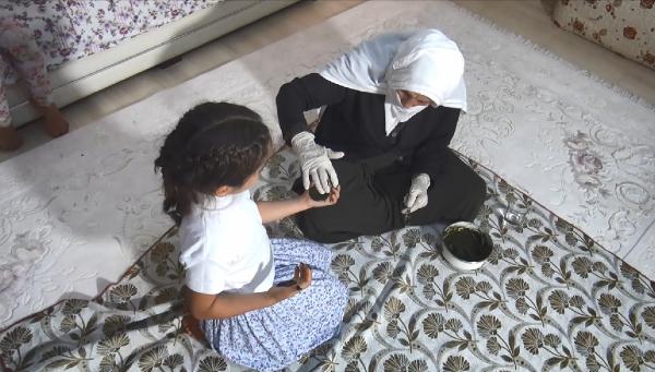 Çocukları ve torunlarının ellerine kına yakan Elif Direkçi, “Ellere kına yakılması bizler çocukken de vardı. Annelerimiz anlatırdı, onların da anneleri ellerine bayram yaklaştığında kına kayardı. Biz her bayram yaklaştığında annemize ‘Hadi elimize kına yak’ diye sürekli söylerdik. Ellerimize kına yaktıklarında çok mutlu olurduk. Şimdi de çocuklarımızın, torunlarımızın ellerine kına yaktığımızda çok seviniyorlar. Bayramlarımızın bir geleneğidir. Her bayram bunu yaparız” dedi.
