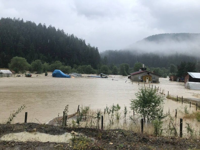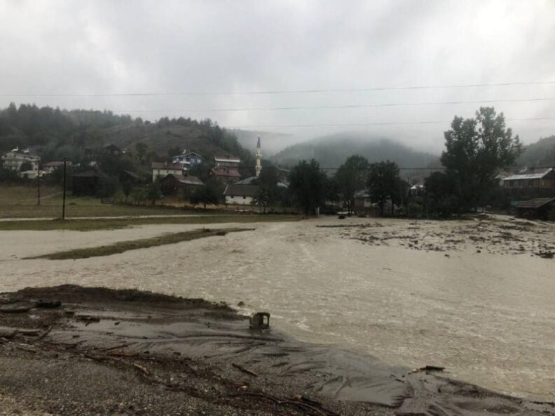 Meteoroloji Kastamonu İl Müdürlüğünün kuvvetli sağanak yağış uyarısının ardından Kastamonu’da birçok noktada sel yaşandı. 19 ilçesi bulunan Kastamonu’da hemen hemen bütün ilçelerde su taşkınları yaşanırken özellikle Azdavay ve Küre’de doğal afet yaşandı. Azdavay ve Küre başta olmak üzere birçok yerde araçlar sel sularına kapıldı, iş yerlerini ise su bastı, bazı araçlar da yollarda oluşan çamur yığınına saplandı. Derelerin taştığı Azdavay’da ilçede tarım arazileri de sel suları altında kaldı. Kastamonu’yu Azdavay’a bağlayan tüm yollar sel suları altında kalırken ilçeye giriş ve çıkış şu anda yapılamıyor.