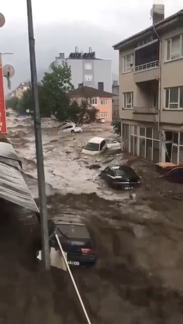 Kastamonu’da bugün sabah saatlerinden itibaren yağan yoğun yağış nedeniyle Azdavay, Bozkurt, Cide, Şenpazar, Daday, Küre, Ağlı ve İnebolu ilçeleri sele teslim oldu. Yaşanan felakette can kayıpları yaşandığı ve çok sayıda vatandaşın mağdur olduğu öğrenildi. Selden en çok etkilenen alanlar arasında olan Bozkurt ilçesinde sel sularının ikinci katlara kadar yükseldiği binalarda yaşayanlar, kurtulmak için çatılara sığındı. Sel suları ile yıkılma tehlikesi yaşayan 7 katlı bir binanın çatısına sığınan vatandaşları kurtarmak için ise bölgeye helikopter sevk edildi. İlçedeki son durumu TV canlı yayınına bağlanarak anlatan Bozkurt Belediye Başkanı Muammer Yanık, “Talihsiz bir şekilde ilçemizin yok oluşunu seyrediyoruz” dedi.