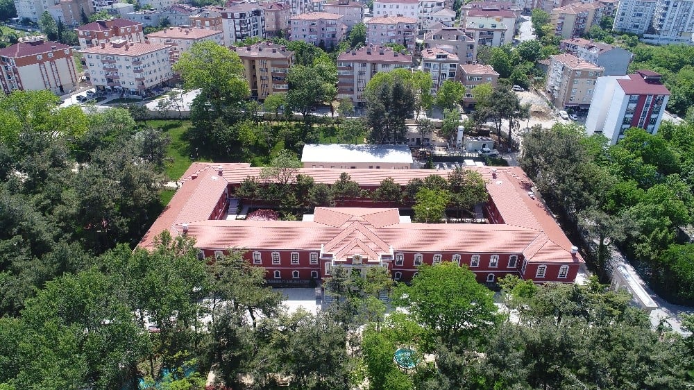 Yeni tip korona virüs salgını ile mücadele kapsamında hizmet vermesi planlanan İstanbul’un en eski hastanelerinden birisi olan Tarihi Hadımköy Askeri Hastanesinin restorasyon çalışmaları 35 günün ardından tamamlanmıştı. Çalışmaların tamamlanmasının ardından Cumhurbaşkanı Recep Tayyip Erdoğan tarafından geçtiğimiz günlerde açılışı gerçekleştirilen hastaneye Dr. İsmail Niyazi Kurtulmuş Hastanesi ismi verilmişti. Toplamda 500 kişilik bir restorasyon ekibinin kısa sürede tamamladığı hastane havadan görüntülendi. Hastanenin 4 giriş kapısı bulunurken bahçesinde yer alan balık havuzları ve ağaçların üzerinde bulunan kuş yuvaları ayrı bir güzellik katıyor.