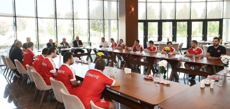 Türkiye Futbol Federasyonu Başkanı Nihat Özdemir, Avrupa Şampiyonası hazırlıkları kapsamında Riva’da kampa giren Down Sendromlular Futsal Milli Takımı sporcuları ile bir araya geldi.
