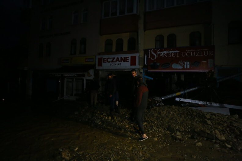 Kastamonu’nun Azdavay ve Bozkurt ilçeleri dün gece saatlerinde başlayan yoğun yağış sebebiyle sel altında kaldı. Özellikle Bozkurt ilçesinde yer alan Ezine Çayı’nın taşması ile ilçenin bir bölümü sular altında kaldı. Edinilen bilgiye göre yaşanan sel felaketinde çok sayıda ölü ve kayıp vatandaş olduğu öğrenildi. Öte yandan İçişleri Bakanı Süleyman Soylu, felaketini öğrenir öğrenmez Bozkurt ilçesine intikal etti ve vatandaşlar ile bizzat ilgilendi. İlçede incelemelerde bulunan Bakan Soylu, hala afet alanında yer alarak çalışmaları bizzat koordine ediyor. Sel olayının hemen akabinde bir arama kurtarma helikopteri sevk edilen bölgede hala AFAD ve JAK Timleri arama kurtarma çalışmalarını sürdürüyor. Ayrıca 112 ve UMKE ekipleri de vatandaşların sağlık durumunu sürekli kontrol ediyor. Öte yandan birçok vatandaş sular altında kalan evlerinde kurtarılmayı beklerken, bir çok vatandaş da geceyi dışarıda geçiriyor.