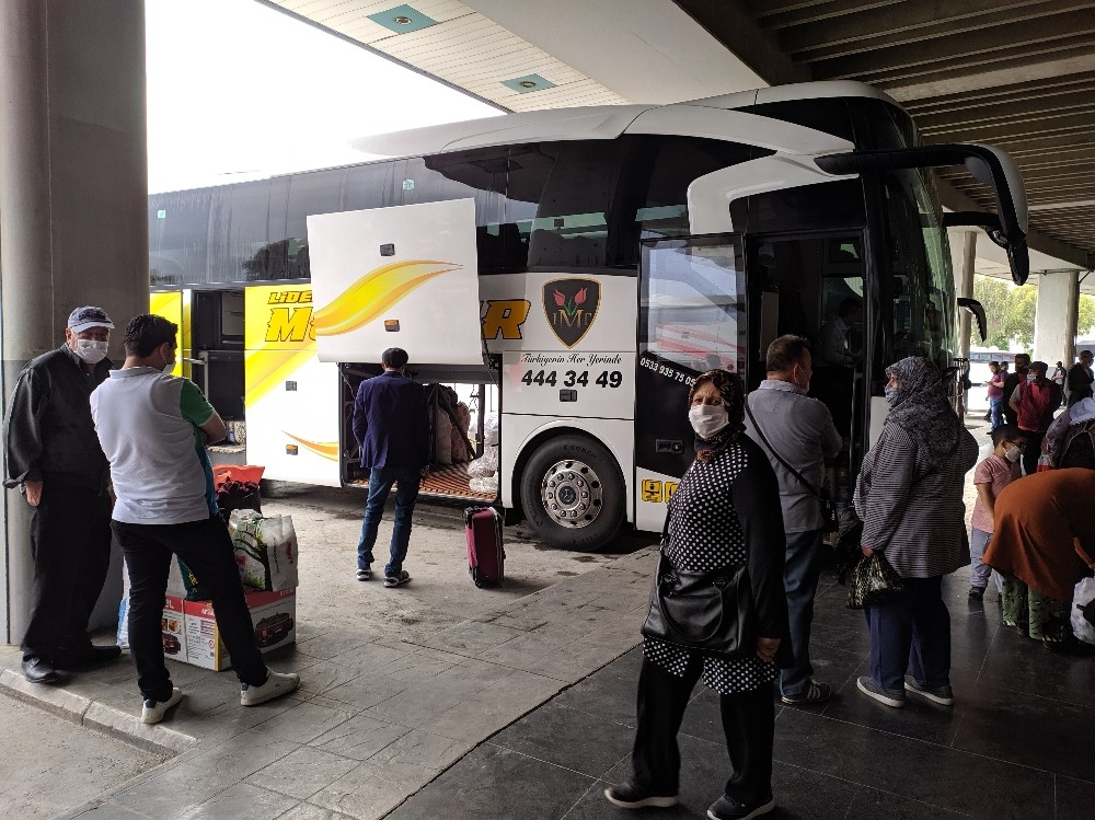 Şehirler arası seyahat sınırlamasının 1 Haziran itibarıyla kaldırılmasının ardından İzmir Şehirler Arası Otobüs Terminali’nde (İZOTAŞ) hareketli günler başladı. Asker uğurlamasıyla birlikte otobüs terminalinde, bugün öğle saatlerinde yoğunluk daha da arttı. Koronavirüsle mücadele kapsamında uzmanların sık sık yaptığı maske takılması ve sosyal mesafeye dikkat edilmesi uyarılarına ise aldırış edilmemesi dikkat çekti.