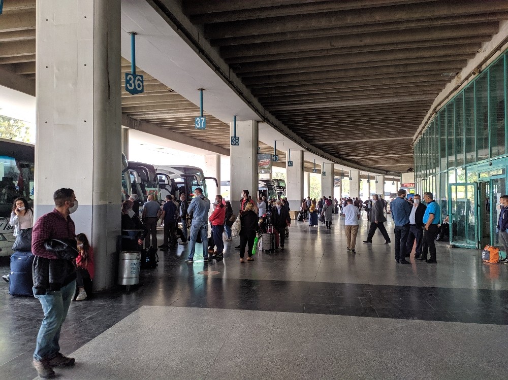 Terminalde, peronda otobüslerinin hareket saatini bekleyenlerin büyük bölümü ile asker uğurlaması yapan yaklaşık 100 kişinin koronavirüs tedbirlerini hiçe saydığı gözlendi. Davul ve zurna eşliğinde toplananlar, maskesiz olarak ve sosyal mesafeye dikkat etmeyerek, halay çekip, dans etti. Asker eğlencesini cep telefonlarının kameraları ile görüntüleyenler de sosyal mesafe kuralına uymazken, kutlama sloganlarla son buldu.