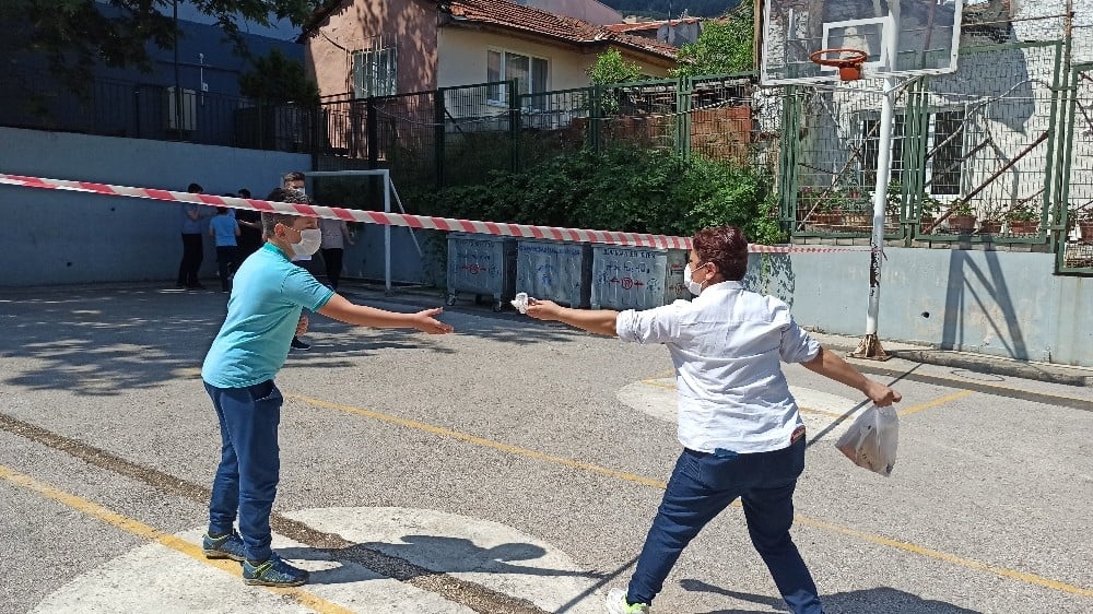 Bursa’nın Osmangazi ilçesindeki bir okulda 80 dakikalık sözel ilk oturumun tamamlanmasının ardından öğrenciler 45 dakika mola verdi. Bu sırada çocukları için evlerinde pasta börek yapıp mola arasında öğrencilere vermeyi hedefleyen veliler okul bahçesine alınmayınca çılgına döndü. Okul kapısına hücum eden veliler sosyal mesafe kurallarını hiçe sayınca polis ekipleri okulun kapılarını kapamak zorunda kaldı. Çocuklarını göremeyen bazı veliler isyan ederken okulun bahçesine şerit çeken görevliler sosyal mesafeye uygun şekilde sıraya soktukları çocukların yeme ve su ihtiyaçlarını tek tek polis ekipleriyle birlikte giderdi. Çocukların zaman zaman velilerine gidin uzaklaşın uyarısında bulunmaları dikkat çekti.