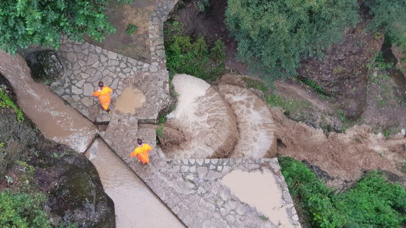 Olayla ilgili bilgi veren mağaranın işletmecisi Eyüp Bahçeci, gece saatlerinde başlayan şiddetli sağanak sonrası mağaraya girişin kapandığını aktardı.