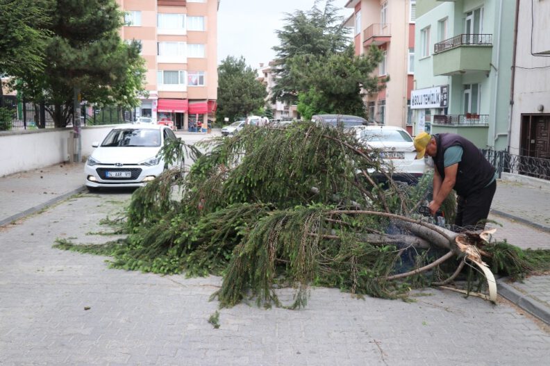 Kars’ın Sarıkamış ilçesinde etkili olan yağmur ve şiddetli rüzgâr hayatı olumsuz etkilemeye devam ediyor. Şiddetli rüzgârın devasa ağaçları yerlerinden sökerek yüzlerce metre ileriye fırlatması kameralara yansıdı. Öte yandan Kars Valiliği şiddetli rüzgar ve sağanak yağmur karşısında halkı uyarmıştı.