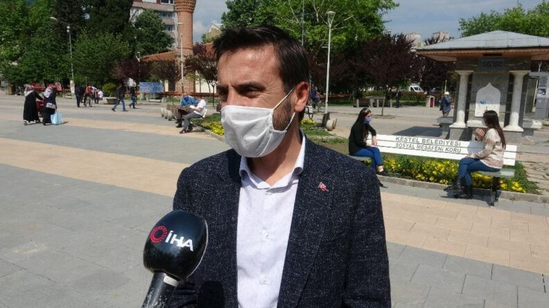 Keles Belediye Başkanı Mehmet Keskin, koronavirüs tedbirleri kapsamında banklarda sosyal mesafe düzenlemesine gidildiğini söyledi. Sadece iki uç kısmına oturulan bankların üzerine ise, ‘accık ötede otun’ yazıldı. Başkan Keskin, ramazanla birlikte toplu iftar organizasyonlarıyla artan vaka sayısının, uyarıların ardından düştüğünü belirtti.